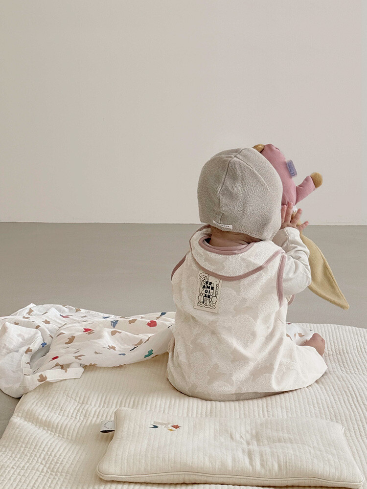 기존 수면조끼의 두툼함과는 다르게 얇은 소재라 봄 가을에 입히기 딱 좋은 테리소재였고, 부드러워 아기가 입고 움직이기 편했어요. 지금은 보일러 안 틀고 프랑브아즈 수면조끼 착용하고 재워요!
