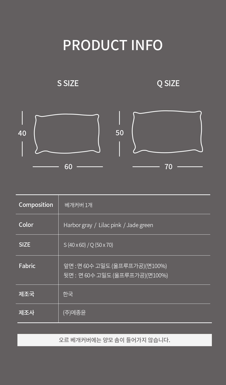 오르(Or) 60수 고밀도 베개커버 Q(50X70) 3colors