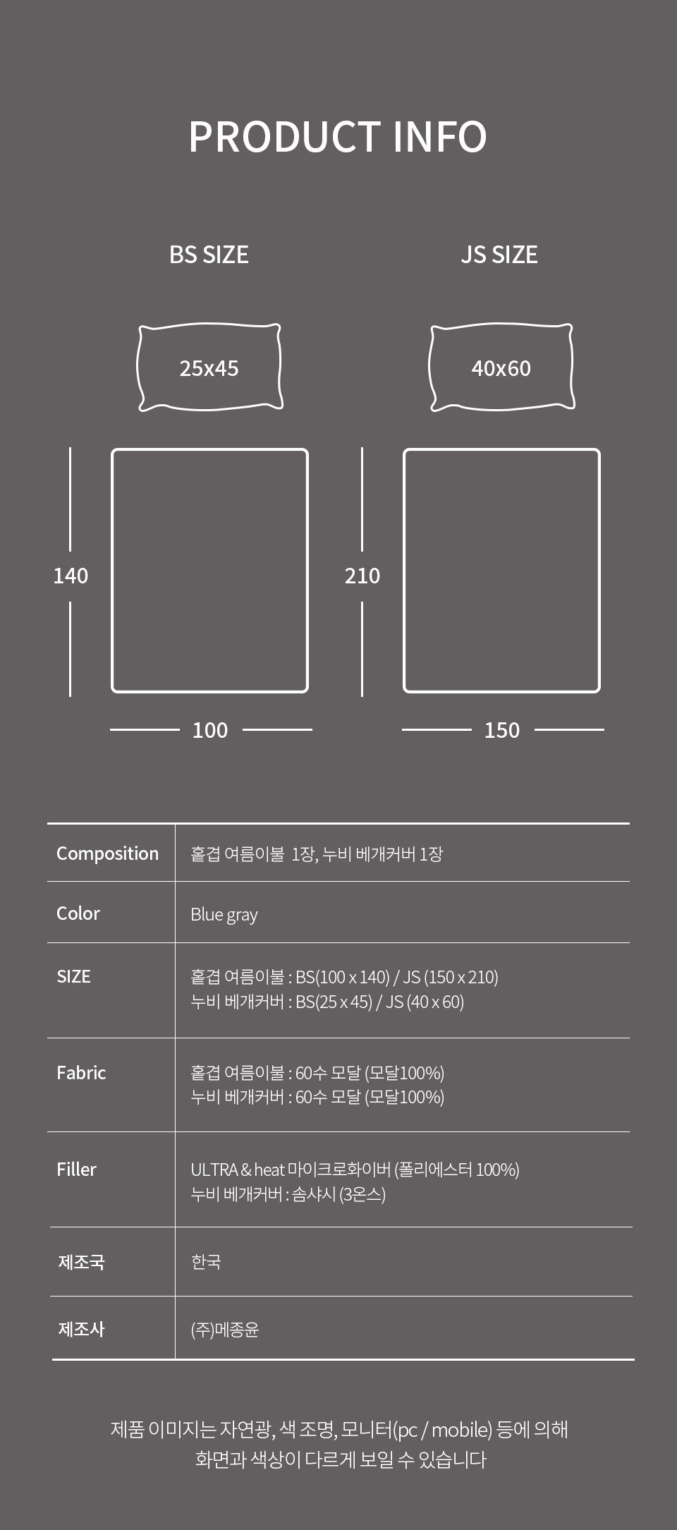 · 건조기 사용 시 제품에 손상이나 수축 및 변형이 올 수 있으므로 자연 건조를 권장 드립니다.