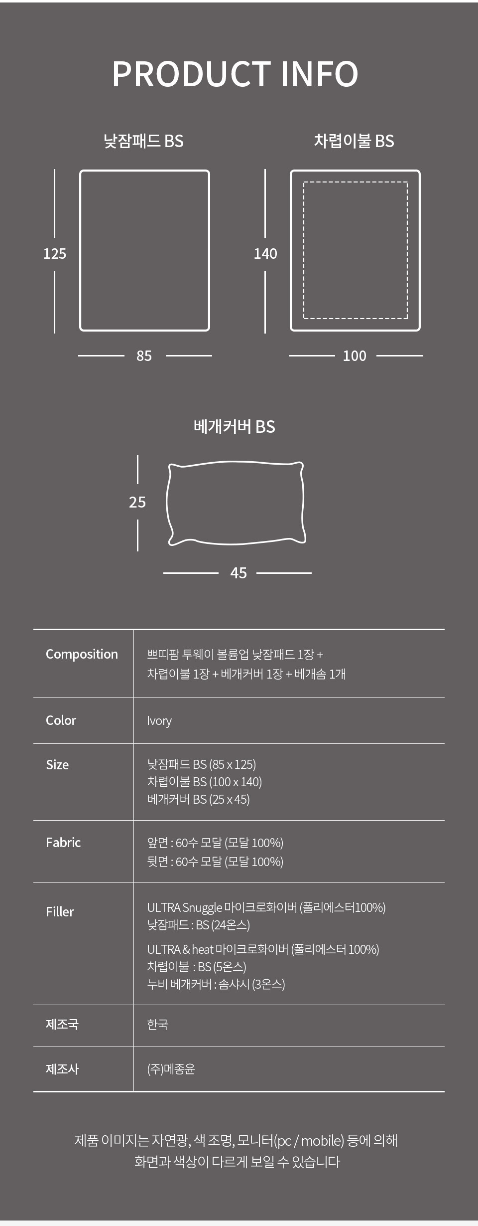 · 건조기 사용 시 제품에 손상이나 수축 및 변형이 올 수 있으므로 자연 건조를 권장 드립니다.