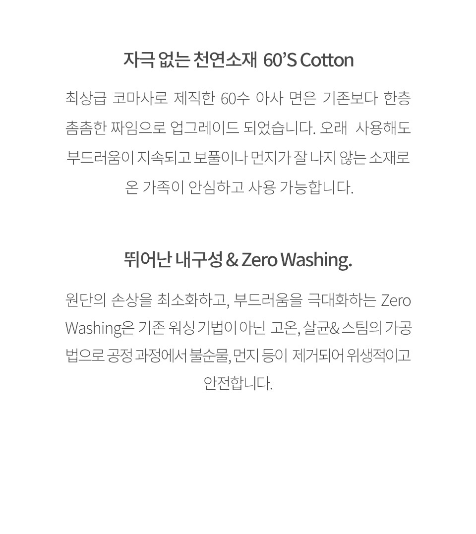 · 건조기 사용 시 제품에 손상이나 수축 및 변형이 올 수 있으므로 자연 건조를 권장 드립니다.