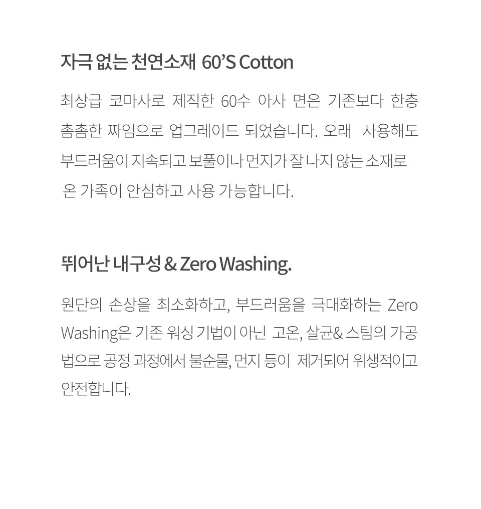 · 건조기 사용 시 제품에 손상이나 수축 및 변형이 올 수 있으므로 자연 건조를 권장 드립니다.