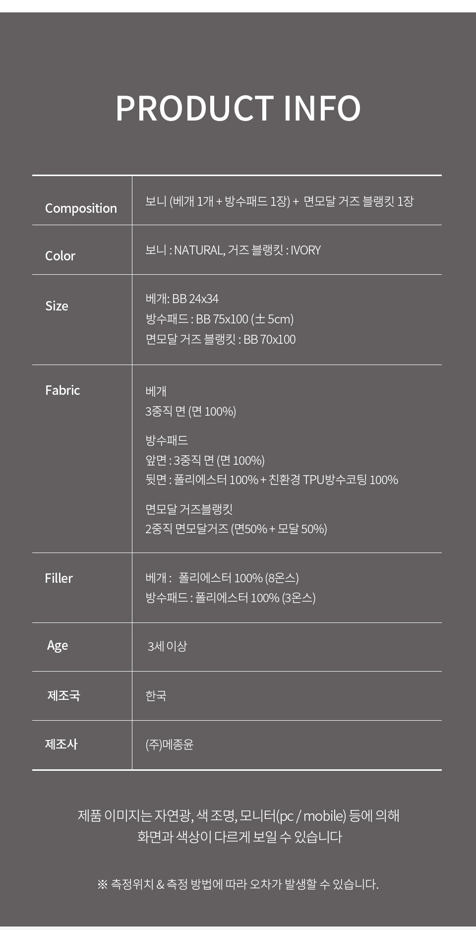 [GIFT SET] 보니 오가닉 방수패드 + 베개 + 블랭킷 세트