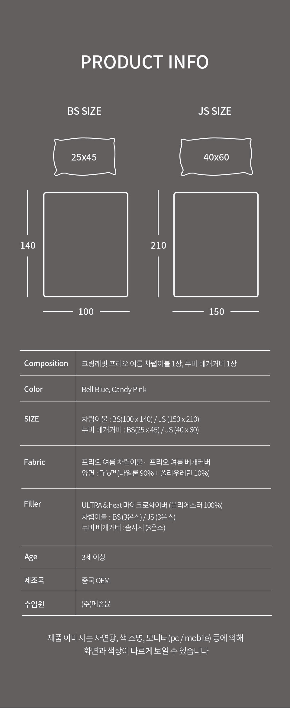 · 건조기 사용 시 제품에 손상이나 수축 및 변형이 올 수 있으므로 자연 건조를 권장 드립니다.