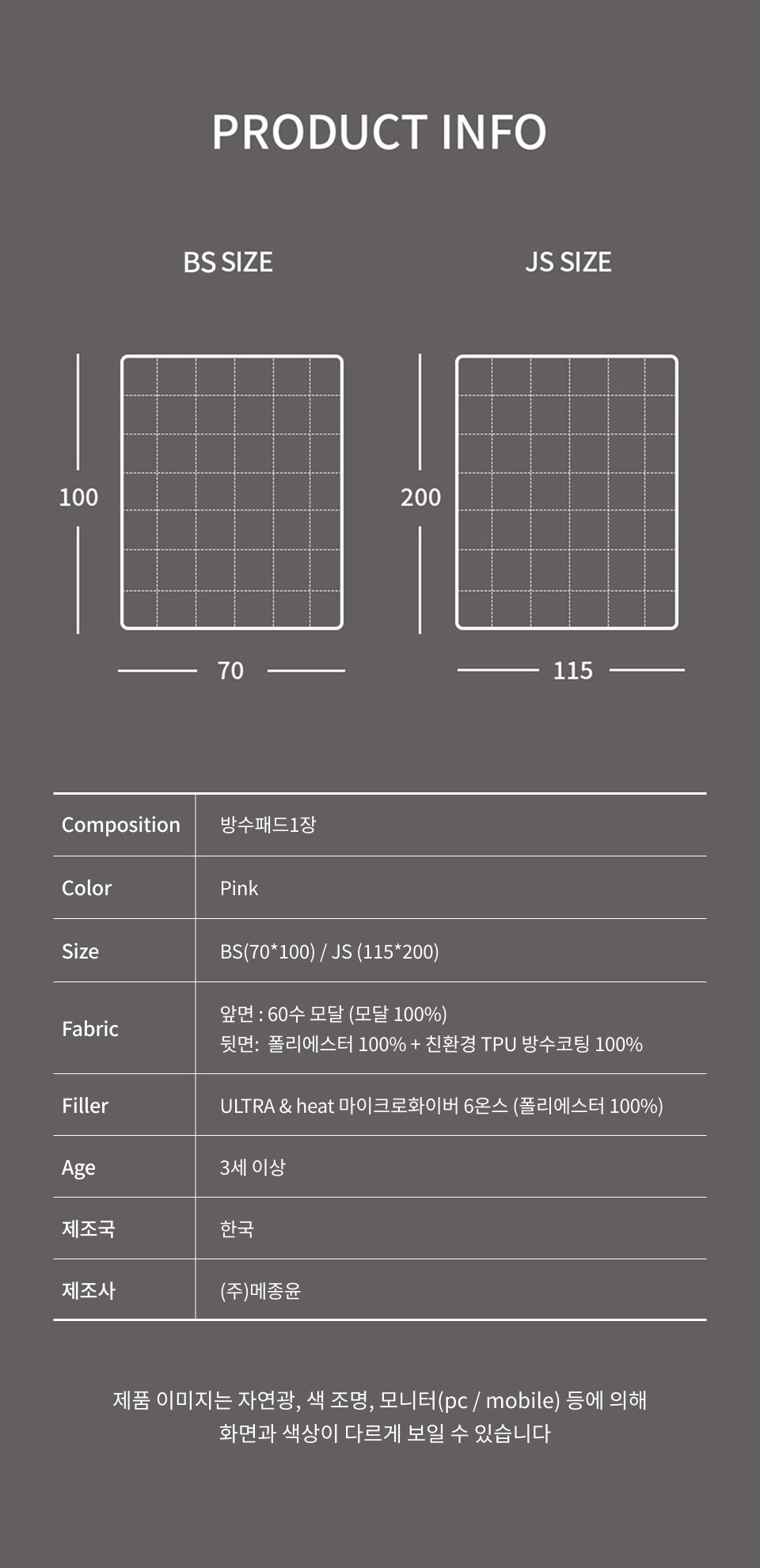 · 건조기 사용 시 제품에 손상이나 수축 및 변형이 올 수 있으므로 자연 건조를 권장 드립니다.