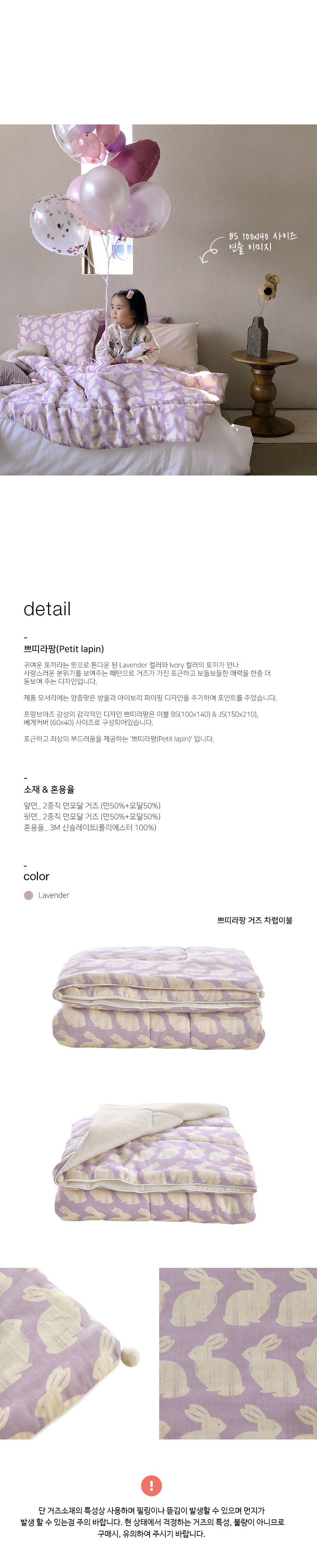 [clearance] 쁘띠라팡 거즈 차렵이불 JS(150X210)